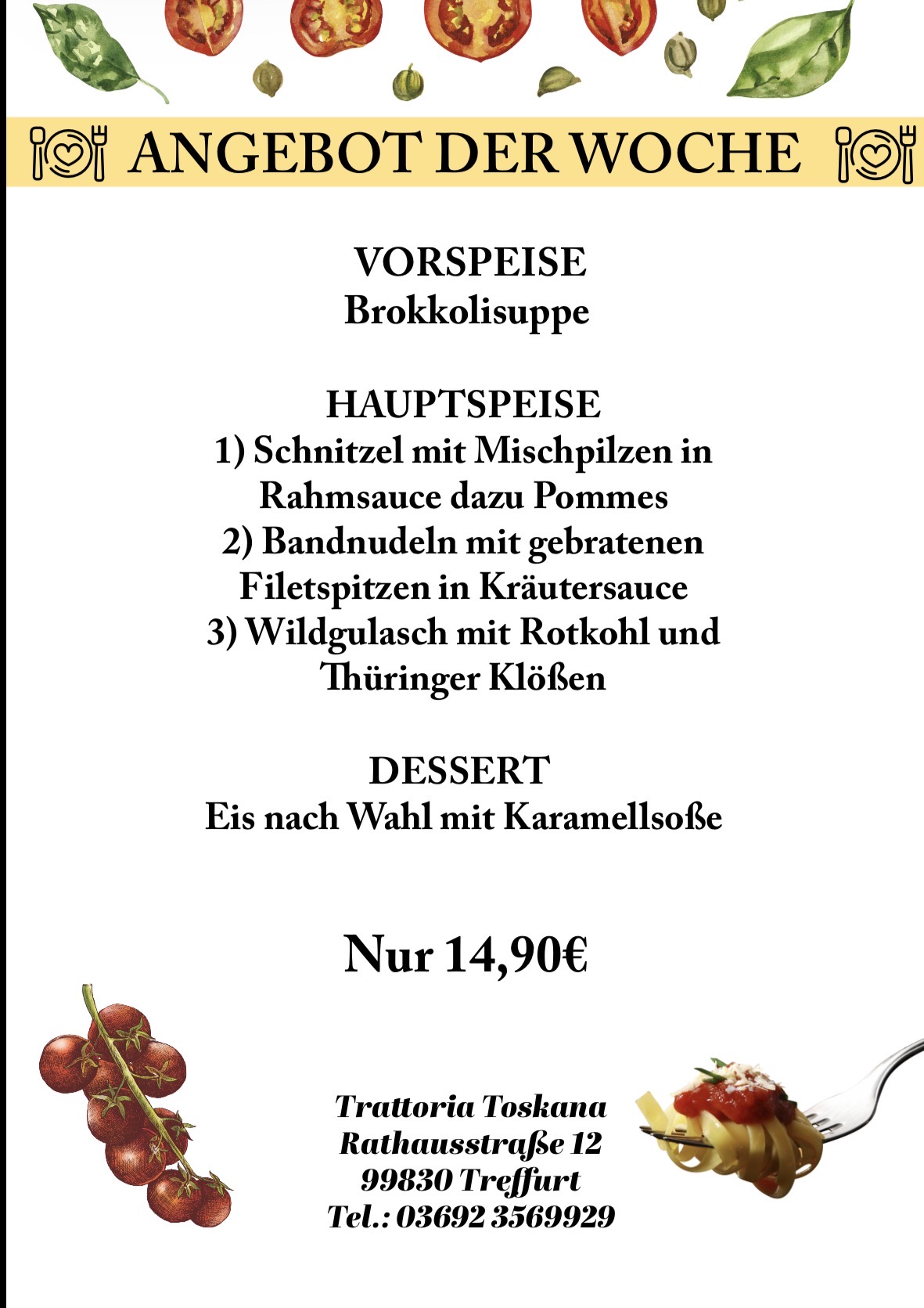 Angebots-Menü für 14.90 Euro